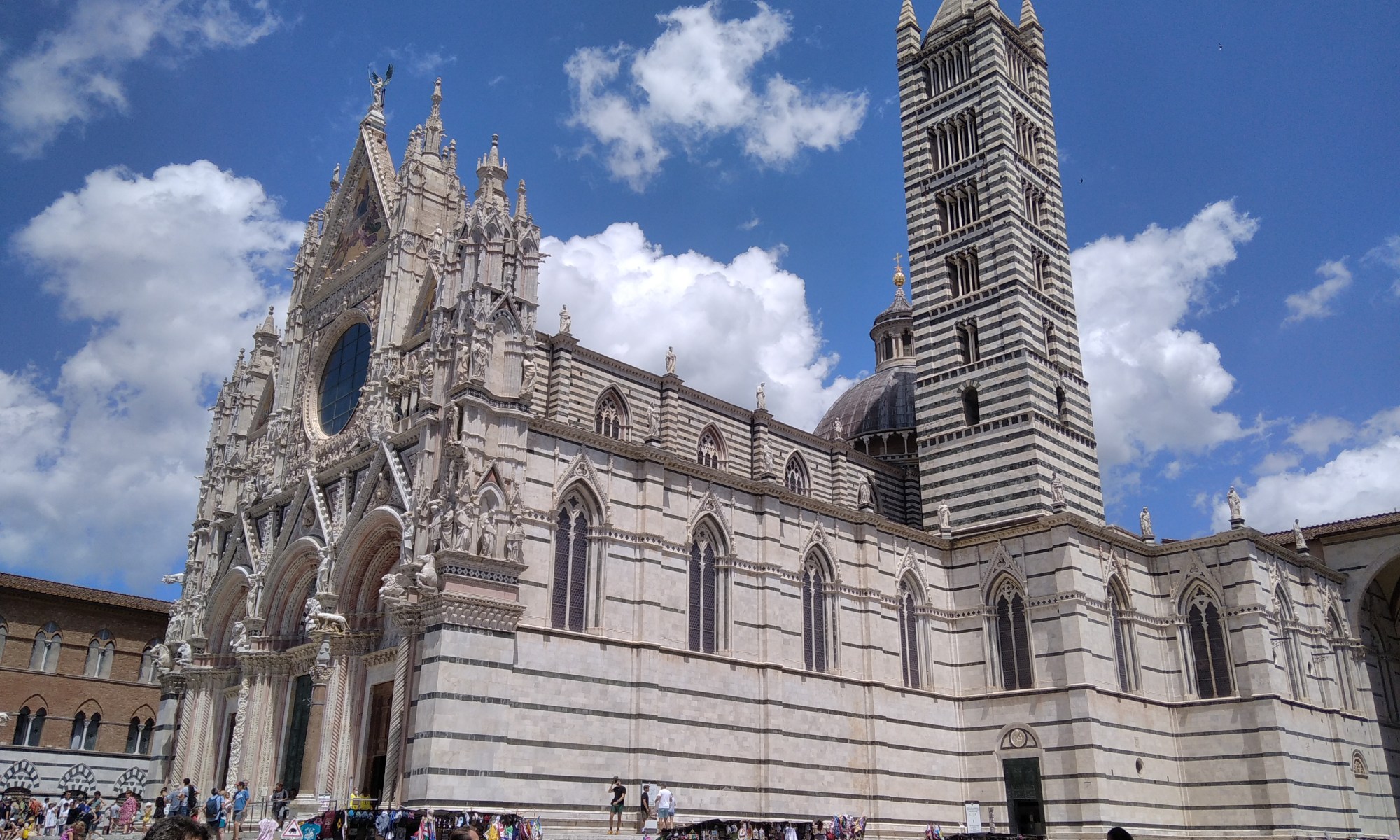 Il Duomo di Siena e la Torre del Mangia, adiacente il Campo, non potevano mancare nella ricerca di arte e cultura, e abbiamo trovato molto di più. Il Duomo e la Torre sono intanto accomunati dal secolo di costruzione, il XIV, e hanno una peculiarità: la stessa identica altezza. La sede del potere divino, il Duomo, e quello civile e politico, la Torre con la sua struttura adiacente (ora occupata da un interessante museo), hanno la stessa altezza per simboleggiare l’equilibrio e il fatto che nessuno dei due debba prevalere sull’altro. Un messaggio di pace e armonia che abbiamo riscontrato negli stessi abitanti di Siena.
